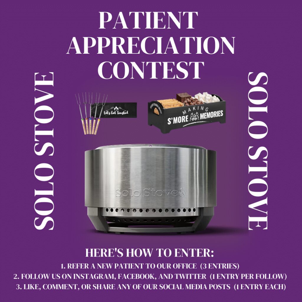 Each quarter we have a fun and different referral contest to thank our patients that refer to us. Past winners have received: A $500 Delta gift card with other fun travel items, a $500 gift card to the Inn at Serenby, an evening with a personal chef, a large Yeti cooler with other summer items, a half day with a professional organizer along with gift cards to the container store, and we are coming up with new ideas all of the time.